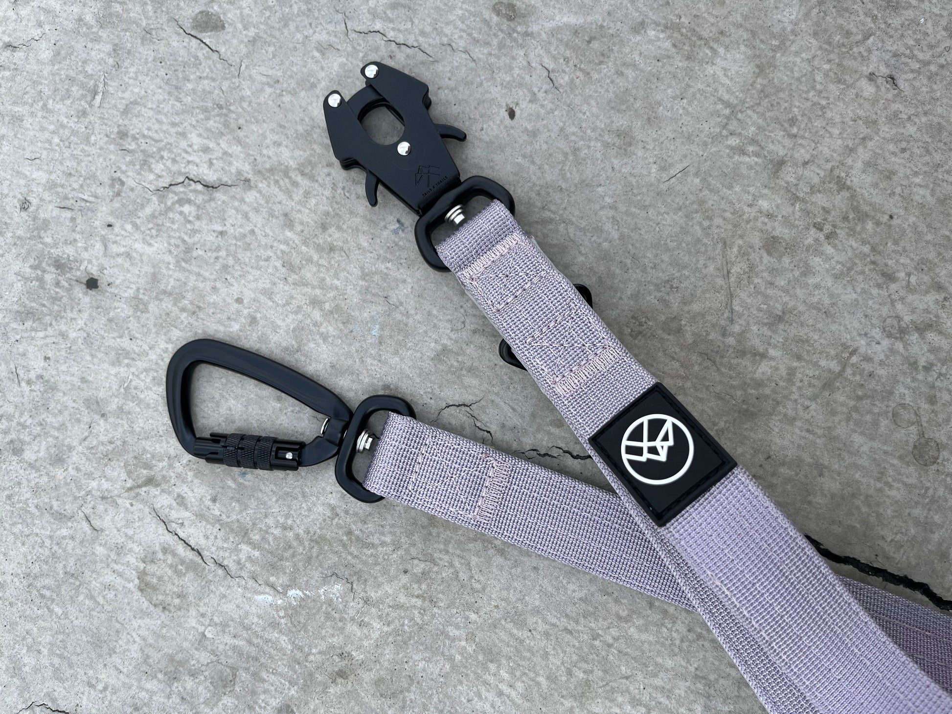 This leash is designed to be worn cross-body, allowing you to keep your dog secure and close to your body at all times (6ft). There is also a secondary triangle-ring you can hook onto which will make the leash shorter (4.5ft)